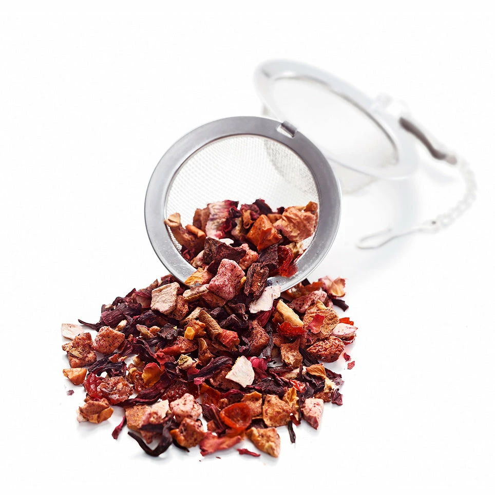 Yummm… ein Tee ist besser als der Andere. Aber dieser hier wird dich mit Sicherheit besonders überzeugen. Dank der saftigen Äpfel, schmeckt dieser Früchtetee nach einem gemütlichen Nachmittag am Kamin mit Tee und Kuchen. Er gibt dir genau den gewissen Süße-Kick, nach welchem wir uns alle immer wieder sehnen. Noch nicht überzeugt? Dann nimm das und lass dir diese Zutaten auf der Zunge zergehen: Saftige Äpfel, Orangen, Hibiskusblüten und feine Mandeln. Wie gesagt: Yummm!