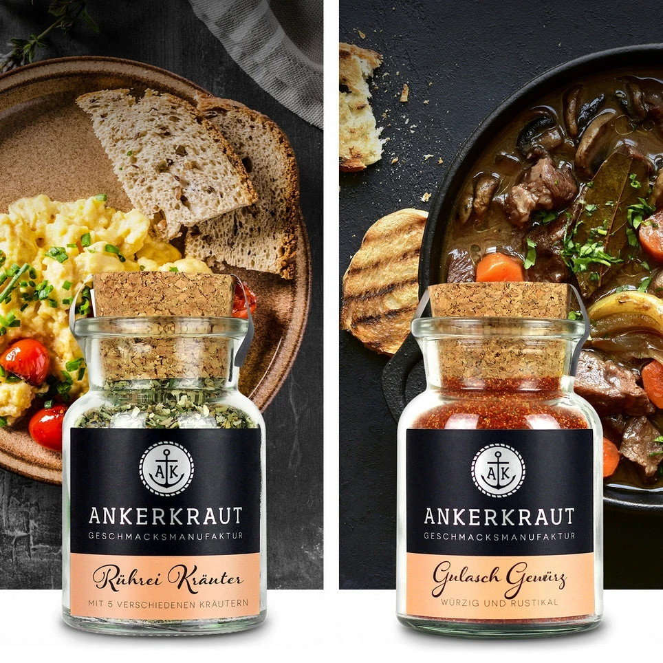 Mit diesem Set liefern wir dir 12 leckere Gewürzmischungen, die garantiert keine Langweile auf dem Teller aufkommen lassen! Feierabend, aber keine Lust zu kochen? Wie wärs mit dem italienischen Klassiker Tomate-Mozzarella? Probiere auch „Omas Liebling“ für herzhafte Hausmannskost oder „Bratkartoffel-Gewürz“ für würzige Kartoffelgerichte.Wenn du das nächste Mal keine Lust auf Kochen hast, wird die Pizza vom Lieferdienst nicht mithalten können. Mit unseren Mischungen zauberst du dir im Handumdrehen ein leckeres Gericht auf den Teller, ohne die Küche auf den Kopf zu stellen!