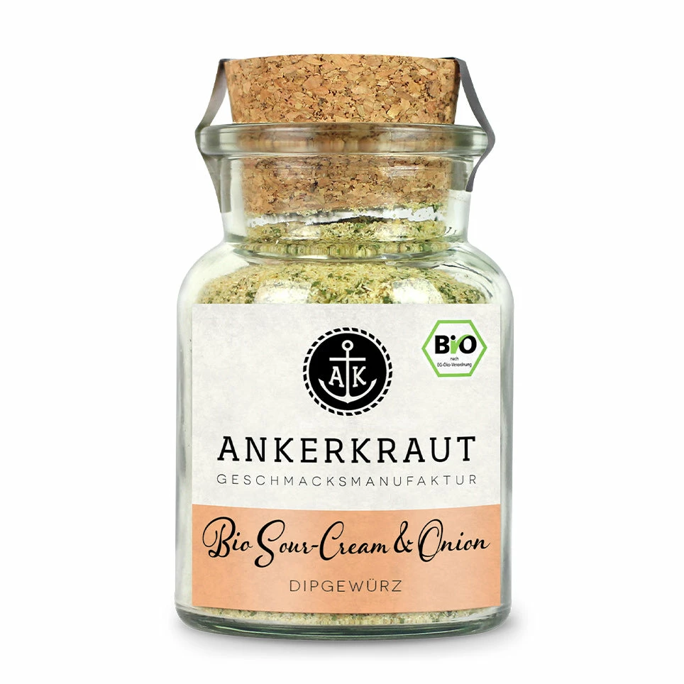 Das nächste Grillfest ist gerettet! Dips spielen da oft eine Nebenrolle, werden aber definitiv unterschätzt! Unser Bio Sour Cream & Onion verdreht deinen Gästen den Kopf, denn sie werden sich vor Vorfreude die Finger lecken. Im Handumdrehen selbstgemacht ist unser Sour Cream Rezept einfach unwiderstehlich gut zu Kartoffeln, Gemüse und Baguette. Der Dip ist raffiniert, die Zubereitung kinderleicht: einfach 2 EL Quark, je 1 EL Crème fraîche und Joghurt mit 3 TL Gewürz verrühren. Eine Stunde im Kühlschrank ziehen lassen und fertig ist unser all-time-favorite: Sour Cream Dip!