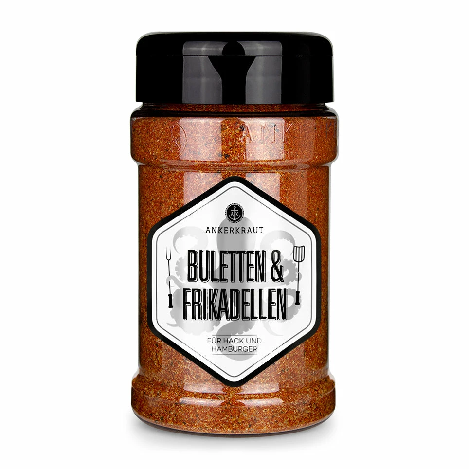 Buletten für alle! Jetzt geht’s rund an der Metzgertheke, wo Du doch endlich die Patentlösung für alles durch den Wolf gedrehte in den Händen hältst. Knoblauch, Paprika und jede Menge Röstzwiebeln lassen Dein Hackfleisch singen. Kinderleicht ist’s auch: Einfach 2-4 Esslöffel mit 500 Gramm Hack vermischen. Wenn Du magst gib noch ein rohes Ei, klein gehackte Zwiebel oder aufgeweichtes Brot dazu. Jetzt Ärmel hochkrempeln und alles kräftig durchkneten, dann in die gewünschte Form bringen. So einfach kann das Leben sein! Wenn Du jetzt gar nicht mehr genug bekommst – auch zum Marinieren von Fleisch ist dieses Gewürz-Schätzchen bestens geeignet.