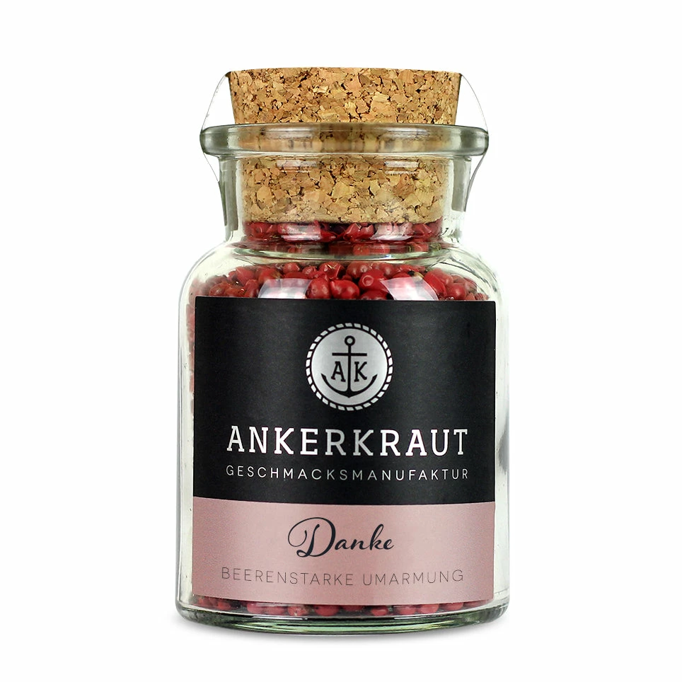 „Danke“ sollte man viel häufiger sagen. Dankbar sein und Dankbarkeit zeigen – für die kleinen Dinge im Leben. Oder für die großen. Unser hochwertiger Rosa Pfeffer in ganzen Beeren ist die ideale Überraschung für jeden, dem du etwas zurückgeben möchtest. Ein liebes Wort, ein offenes Ohr, eine warme Umarmung: Es gibt so viele Dinge, die wir unseren wichtigsten Menschen verdanken und für die wir uns erkenntlich zeigen möchten. Genau dafür geben wir dir als Sonderedition unser Dankeschön-Gewürz an die Hand, dass du nur noch nach Belieben zum Beispiel mit einem Schleifchen veredeln und überreichen musst. Fertig ist der aufrichtige Dank, der auch noch verdammt gut schmeckt!
