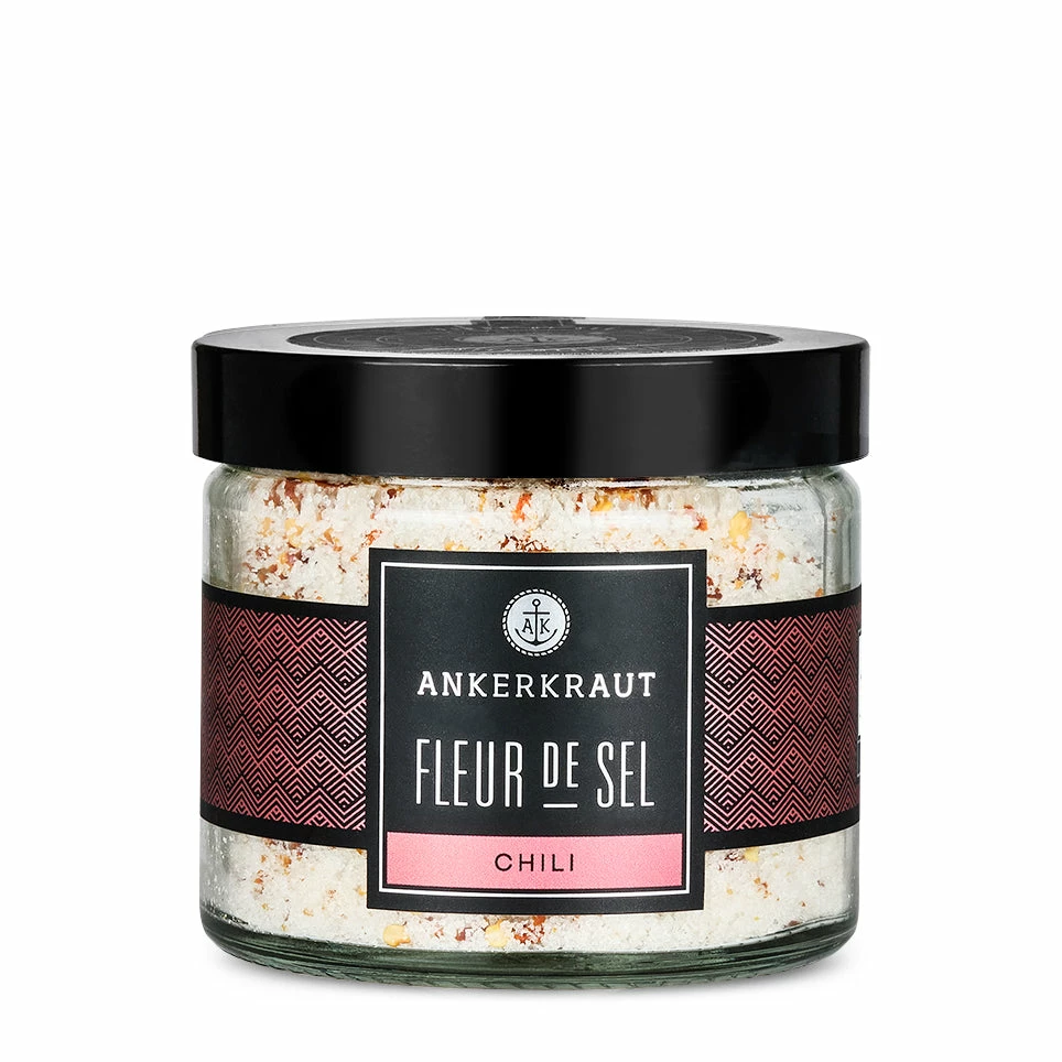 Schon rein optisch wird die Exklusivität dieses Salzes sofort deutlich. Als wahrer Geschmacksträger verwandelt dieses Natursalz Gerichte in einzigartige Traumgenüsse und wird nicht umsonst auch „Die Königin der Salze“ genannt. Alle Gourmets, die Speisen mit einer gewissen scharfen Note lieben, werden auf diese spezielle Sorte „Fleur de Sel – Chili“ nicht mehr verzichten wollen. Auf Grund des ausgewogenen Anteils an geschroteten Chilis erhält es seine unvergleichlich scharfe Nuance und verfeinert damit gegrilltes Fleisch genauso wie Gemüse auf eine ganz besondere Art. Auch Lecker: In Verbindung mit extra nativem Olivenöl erhält man einen vorzüglichen Dip für frisches Weißbrot oder Ciabatta.