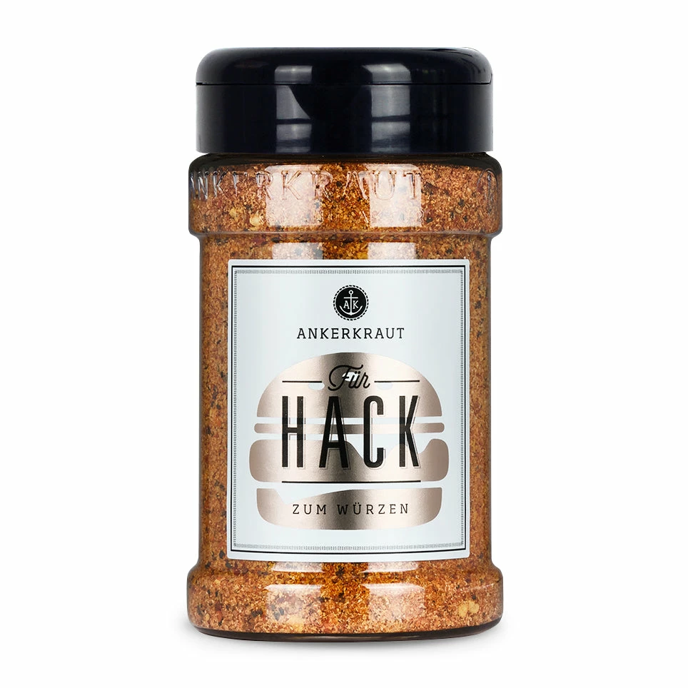 Kein Schnickschnack, kein Glamour: für Hackliebhaber kommt hier eine Mischung, die altbewährte Rezepte von Oma und mediterranen Pfannengerichten mit Hackfleisch den letzten Schliff gibt. Die Zusammensetzung dieser Mischung hat sich bereits in unserem Burger Spice bewährt, sodass wir sie in „Für Hack“ für jegliche Hackgerichte adaptiert haben. Denn mit dieser Mischung macht ihr nichts falsch, weder bei der Zubereitung von bodenständiger Hausmannskost noch bei Spezies wie dem Mettigel oder Hackepeter. Würz‘ dich auf Parties in das Herz eines jeden Hackfleisch-Fans und zaubere ihm ein Lächeln ins Gesicht.
