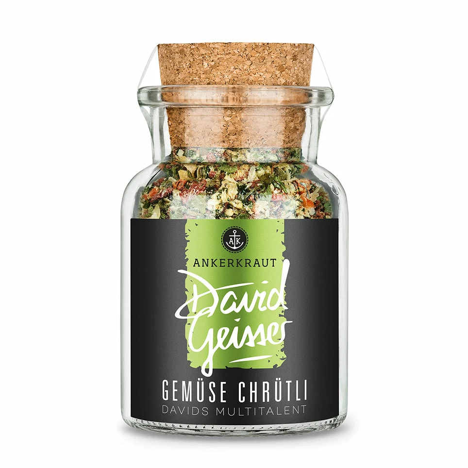 „Gemüse ist doch nur Beilage …“ – oder eben auch nicht! Mir unserem Gemüse Chrütli Gewürz feiern deine Geschmacksknospen bei deinem nächsten Gericht eine Party … und das Gemüse ist der Ehrengast! Der Schweizer Starkoch David Geisser hat uns für diese Gemüse Chrütli empfohlen, eine Mischung aus Zwiebeln, Tomatenchips, getrockneter Karotte, Knoblauch und einigen Zutaten mehr zu probieren. Okay, und jetzt müssen wir los – zur nächsten Gemüse-Gaumen-Party!