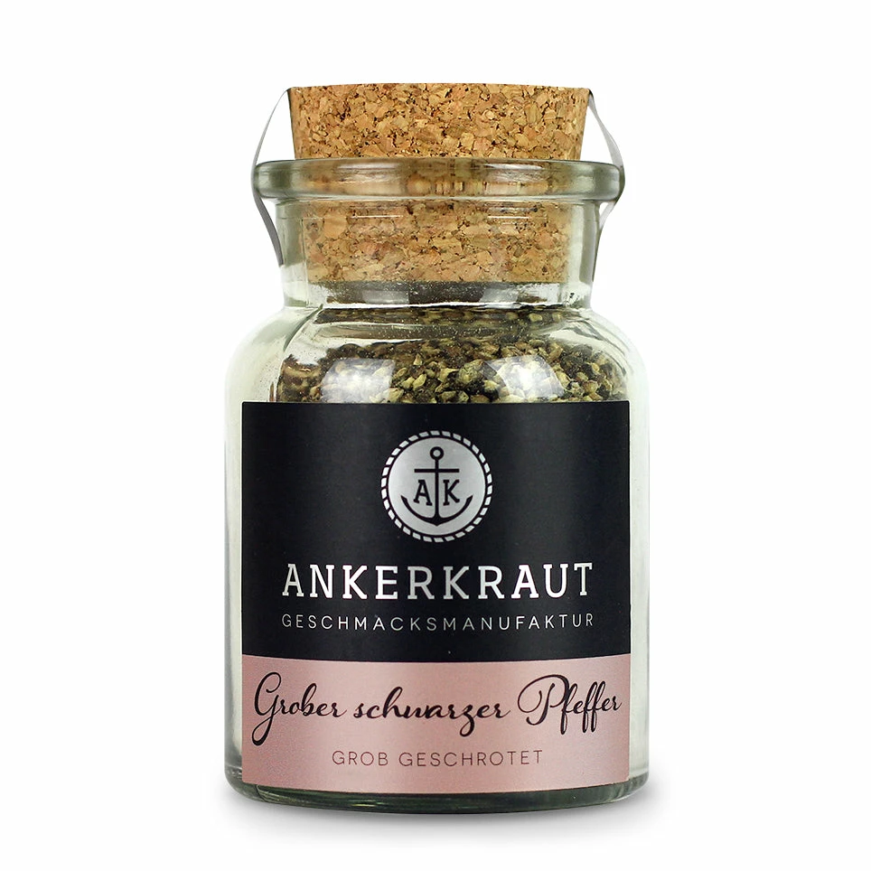 Unser grob gemahlener schwarzer Pfeffer passt auf alle leckeren Gerichte, die etwas Schärfe vertragen können! Wenn es aber nicht irgendein Pfeffer, sondern ein ganz besonderer sein soll, kommt nur der eine in Frage: Der frische, grobe schwarze Pfeffer ohne Zusatzstoffe von Ankerkraut. Dieser würzige Klassiker wird in jeder Küche für sein Aroma gefeiert. Verwende ihn als Finisher auf gegrilltem oder gebratenem Fleisch, beim Kochen im Gemüse-Wok oder im Dressing auf deinem Lieblingssalat – so wird dir beim Abschmecken nie wieder langweilig, versprochen!
