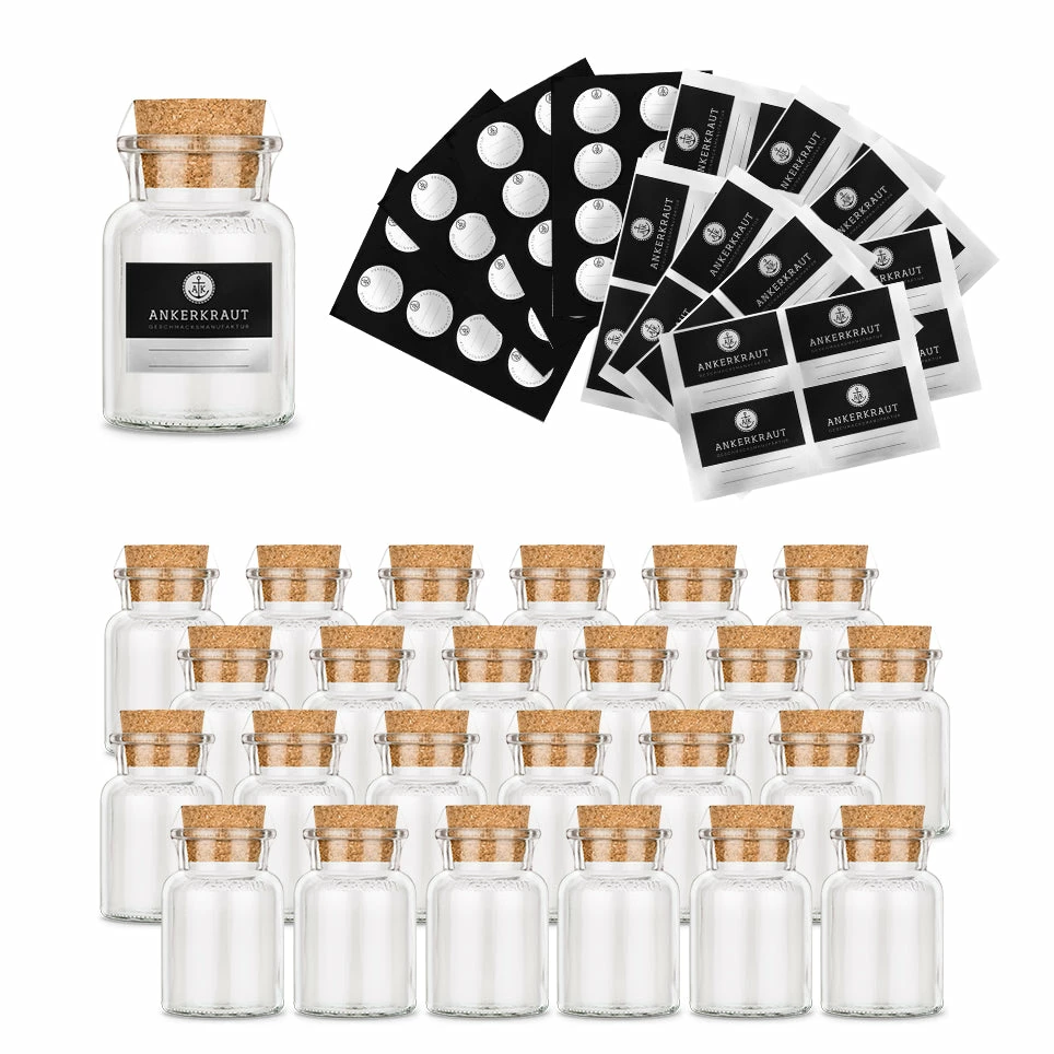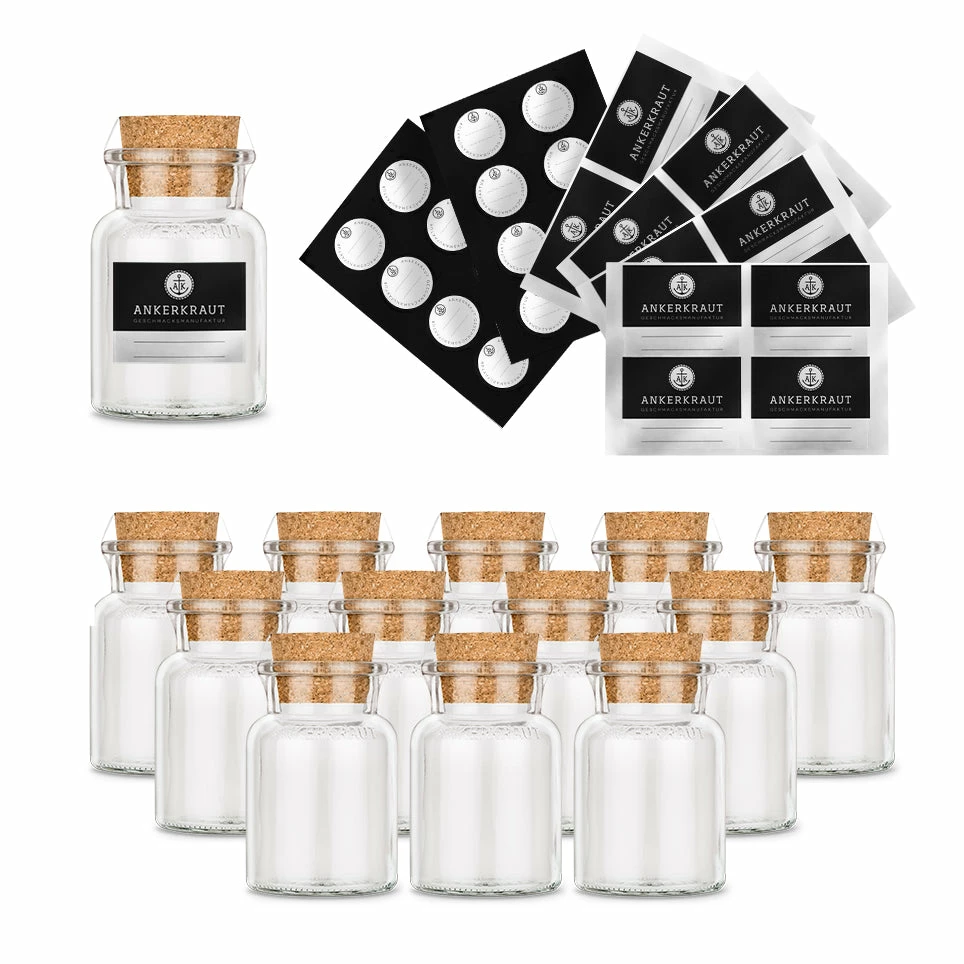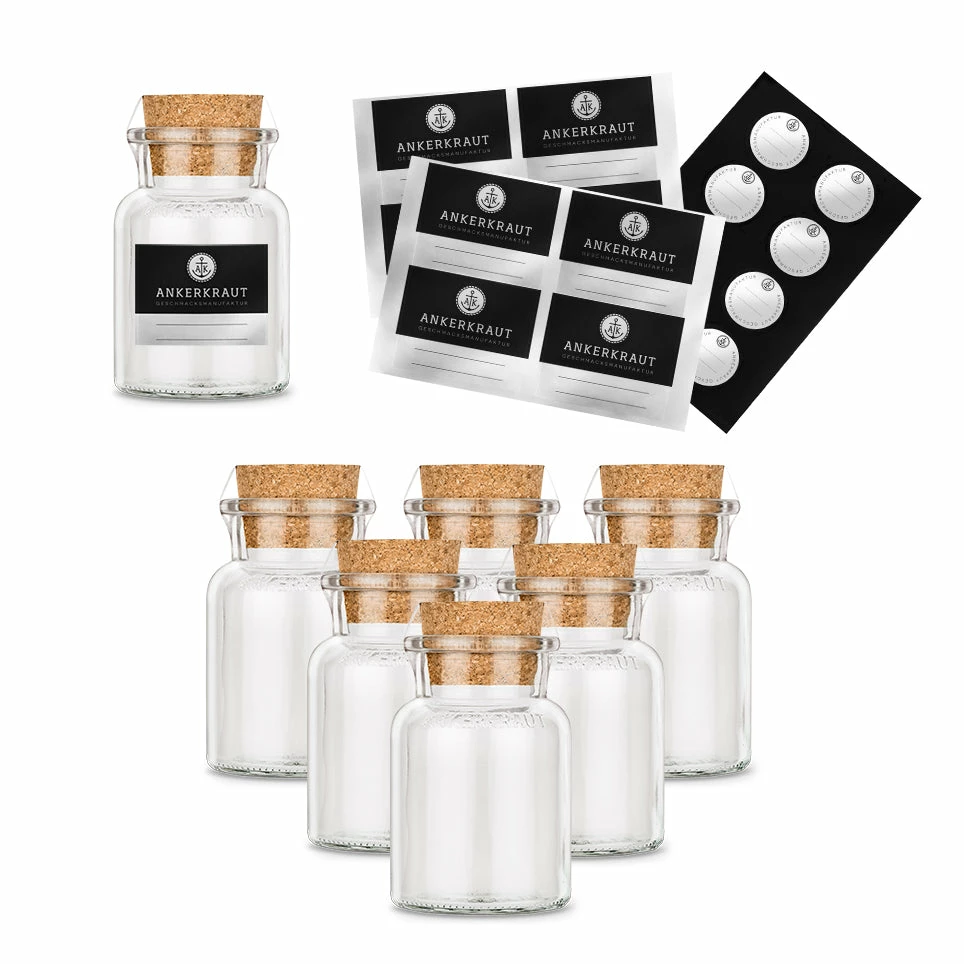 Wer braucht schon ein geheimes Labor mit Hexenkessel, wenn es Korkengläser mit Etiketten und Deckelsiegel frei im Verkauf gibt? Mit diesem Set zum Selbermachen kommen alle experimentierfreudigen Menschen mit Vorliebe für Gewürze auf ihre Mischung. Die leeren Ankerkraut Korkengläschen sind ideal, um eigene Gewürz- und Kräuterkreationen zusammenzustellen und aufzubewahren! Das Set aus leeren Korkengläsern mit Etikett und Deckelsiegel gibt es in drei Varianten: 6, 12 oder 24 Korkengläser zum Selbstbefüllen, Basteln und Verschenken!