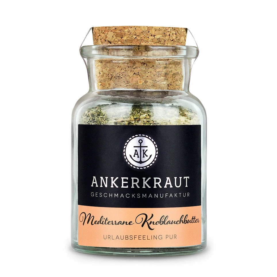 Beim Grillen darf eines auf keinen Fall fehlen: das zartschmelzende Butterhäubchen für Steak, Baguette und mehr. Anstatt wie bisher zur guten alten Kräuterbutter zu greifen (die ohne Frage unumfochtener Klassiker bleibt), probiere doch mal unsere Mischung für mediterrane Knoblauchbutter! Mit Kräutern wie Oregano, Thymian, Basilikum und Rosmarin schmeckt sie wie ein Kurzurlaub am Meer. Die Zubereitung ist mit unserer Gewürzmischung ganz leicht: dazu einfach 250 Gramm weiche Butter mit 1 – 2 TL Gewürz verrühren und für zwei Stunden kaltstellen.