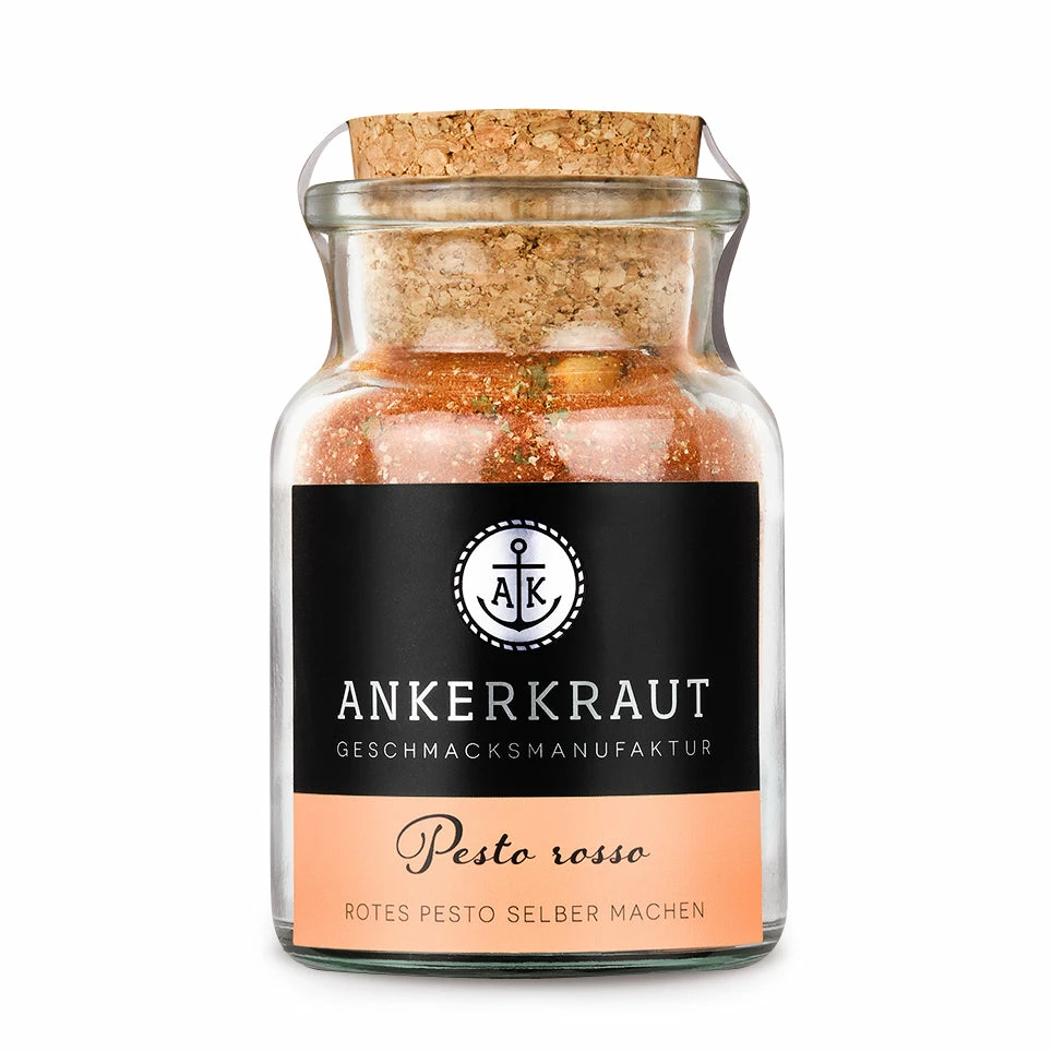 Nudeln mit Pesto gehen immer. Mit unserer super duper leckeren Pesto Rosso Mischung kannst du dir dein rotes Pesto ganz schnell selbst anrühren. Wir haben viele Kombinationen probiert und getestet – und den Mix aus Tomatenpulver, Pinienkernen, Zwiebeln, Knoblauch, Meersalz, Paprika edelsüß, Paprika geräuchert und Majoran für top befunden. Pro Portion einfach 2 EL Pesto-Gewürz mit 4 EL Wasser und 2 EL Öl anmischen und zur Pasta geben. Parmesan oben drauf und genießen!