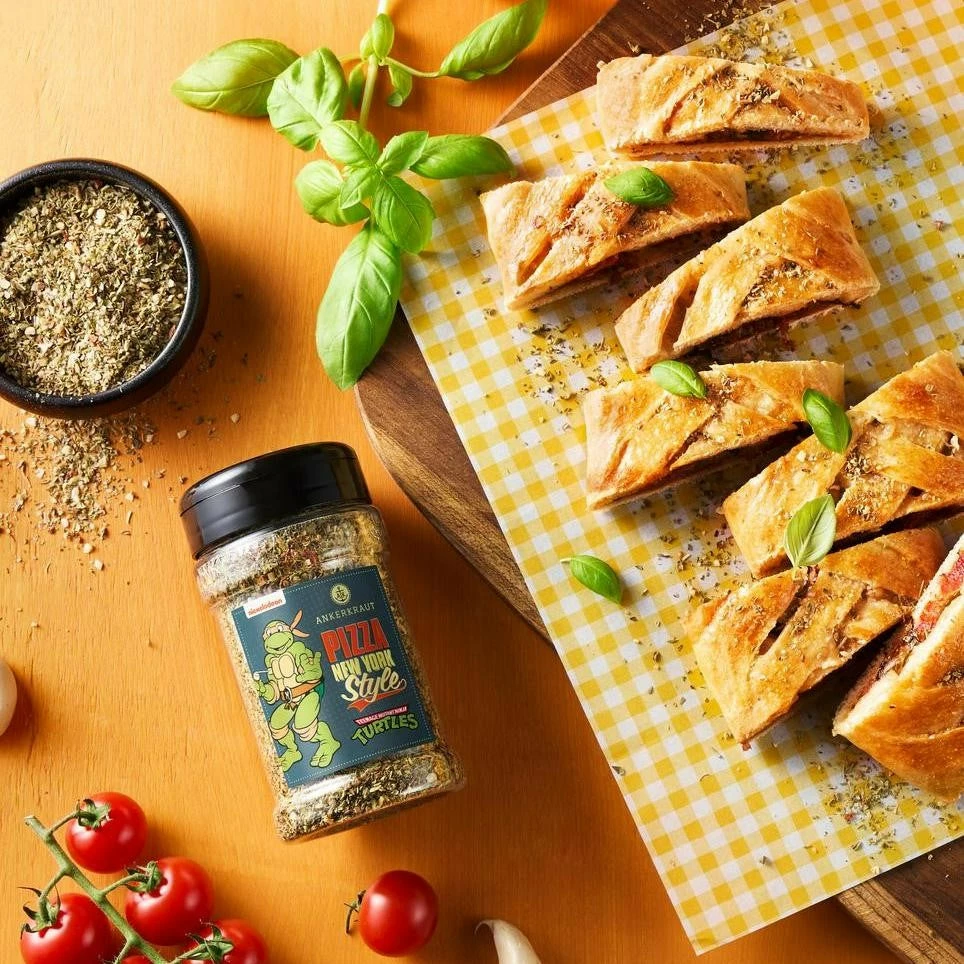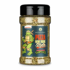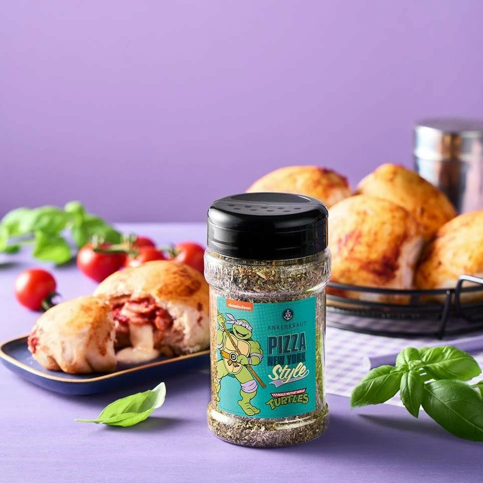 Wenn die Mission lang ist, haben die vier Teenage Mutant Ninja Turtles eine Geheimwaffe: leckere Pizza! Mit voller Ninja-Turtle-Power gehen Leo, Donnie, Raph und Mikey nach dem Essen wieder auf Schurken-Jagd. So erleben die Schildkröten-Teenies spannende Abenteuer, bei denen sie ihre Liebsten und die Stadt vor Bösem retten. Immer mit dabei: ihre Masken! Leo trägt blau, Donnie violett, Raph rot und Mikey orange. Diese vier Farben haben auch die Etiketten unserer Pizza New York Style Streuer, mit dem du – ganz im New York Style – eine Mischung aus würzigem Knoblauch und herbem Oregano über deine frisch gebackene Pizza streuen kannst! Einfach deinen Lieblingshelden auswählen, auf Bestellen klicken und deine Pizza Turtles Sammlung im freshen Ankerkraut-Look starten!