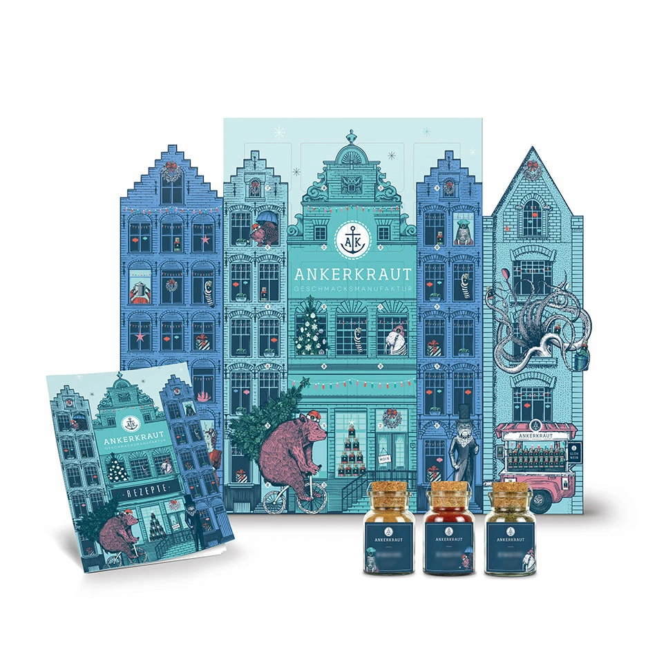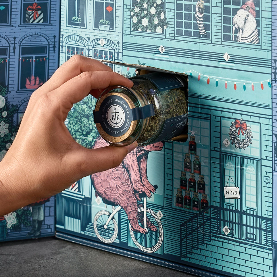 Irgendwie geht die schöne Vorweihnachtszeit ja immer viel zu schnell um. Also müssen die 24 Tage so richtig ausgekostet werden – jeder für sich! Am besten geht das mit einer täglichen Premium-Überraschung in extra super-duper High-Quality. Freue dich auf einen bunteren Mix als jeden Christbaumschmuck, heller strahlend als jede Lichterkette und mehr Freude bereitend als das größte Präsent. Jeden Tag wirst du von einer neuen Ankerkraut Luxusleckerei im Korkengläschen verzaubert, die sich am Herd, Backofen oder Grill einsetzen lässt. Damit das essbare Endergebnis dann genauso premium wird, legen wir dir noch ein Rezeptheft voller Tipps und Ideen mit bei.