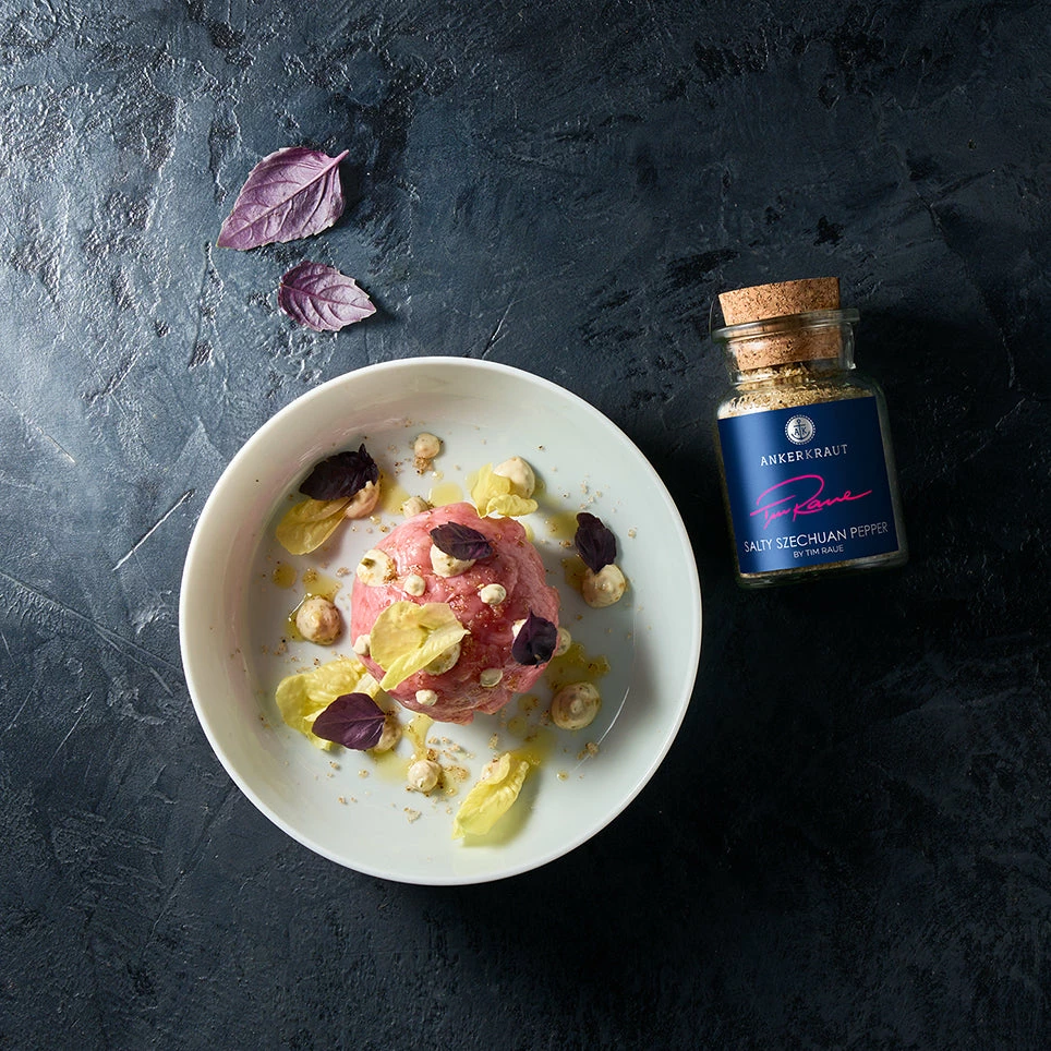 Zwischen Bergen, Flüssen, grünen Tälern und Wäldern hat sich in Sichuan im Südwesten Chinas eine einzigartige Küche voll scharfer, würziger Aromen mit Gewürzen von der Region entwickelt. Ganz vorne mit dabei? Der feurig-blumige Szechuan Pfeffer! Das weiß auch der Sternekoch Tim Raue: Aus rotem und grünem Szechuan Pfeffer mit Fleur de Sel und ausgleichendem Rohrzucker hat er ein absolutes Highlight geschaffen. Unser Salty Szechuan Pepper sprengt als Finisher für Fleisch, Fisch und Tofu deine Geschmacksknospen, bis deine Zunge kribbelt. So schmeckt Berliner Overstatement im Szechuan-Style!