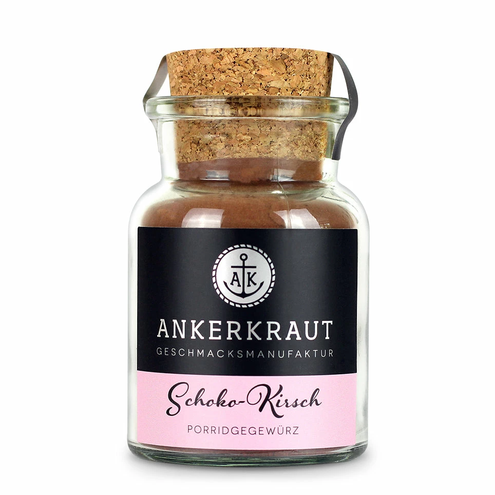 Schokoladenhaft cremig und fruchtig süß durch Kirsche – unser Porridge Gewürz aus der Ankerkraut „Oat Cuisine“ ist hier, um dir den doch manchmal schläfrigen oder grummeligen Start in den Tag zu versüßen. Natürlich darf auch nachmittags schnell einmal zwischendurch süß gesündigt werden. Für eine Portion erwärmst du einfach 40 Gramm Haferflocken mit 200ml Milch in einem Topf und bringst die Mischung unter Rühren zum Kochen. Ein bis zwei Teelöffel des Porridge Gewürzes unterrühren, für drei Minuten ziehen lassen und losschlemmen. Du kannst aber auch Kuchen oder Desserts damit versüßen.