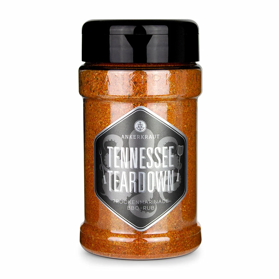 Dieser Rub ist trotz seines Namens absolut ungefährlich was seine Schärfe betrifft, ist dafür aber vollgepackt mit gutem Geschmack für dein rauchiges Grillgut. Da kommt Freude auf bei allen, die ihre BBQ Spezialitäten lieber nicht zu pikant mögen. Perfekt passt das Rub zu Schwein, vor allem zu Ribs oder Pulled Pork. Doch auch so manches Geflügelfleisch wie Huhn lässt sich wunderbar mit Tennessee Teardown abrunden. Zubereitungstechnisch hast du absolut freie Hand und kannst Speisen vom Smoker, Grillrost oder aus der Pfanne aufpimpen. Probiere doch zum Beispiel auch mal ein deftiges Schmorgericht aus dem Dutch Oven.